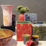 I learned as I experimented, and when guests started to buy the plates off my table, a new project was born. Every piece is unique, front and back, and hand patterned, painted, glazed, and fired in my studio. I delight in the differences in every place setting, so that each stack of dishes, each place at the table, has its own poetry.